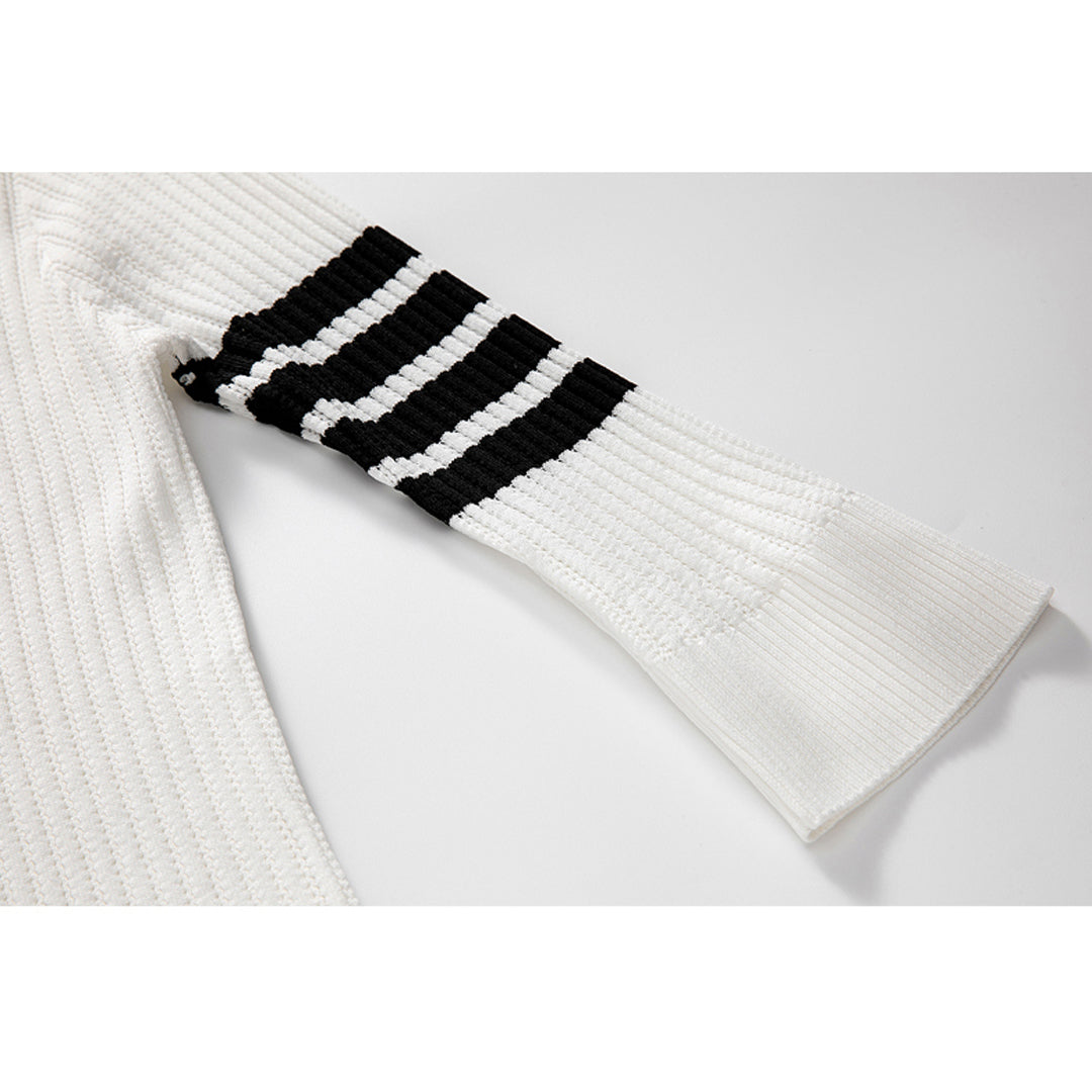 Button-fastening side slits with signature striped grosgrain trim
