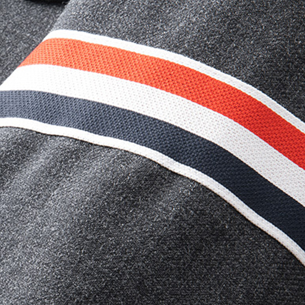 Front zip closure. Signature striped grosgrain buckle at back of neck.
