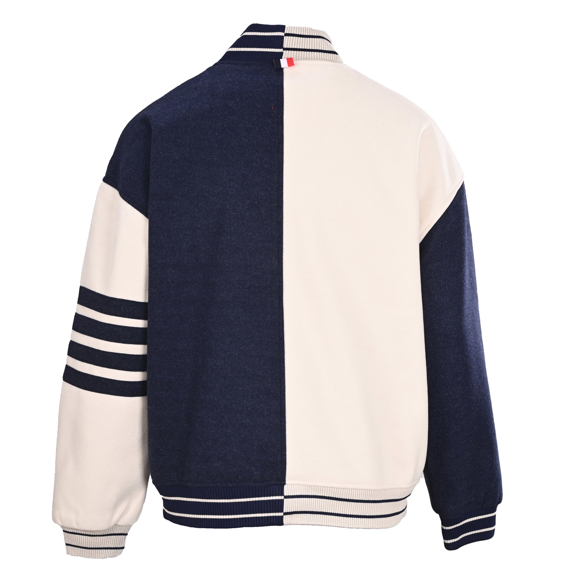 Front zip closure. Signature striped grosgrain buckle at back of neck.